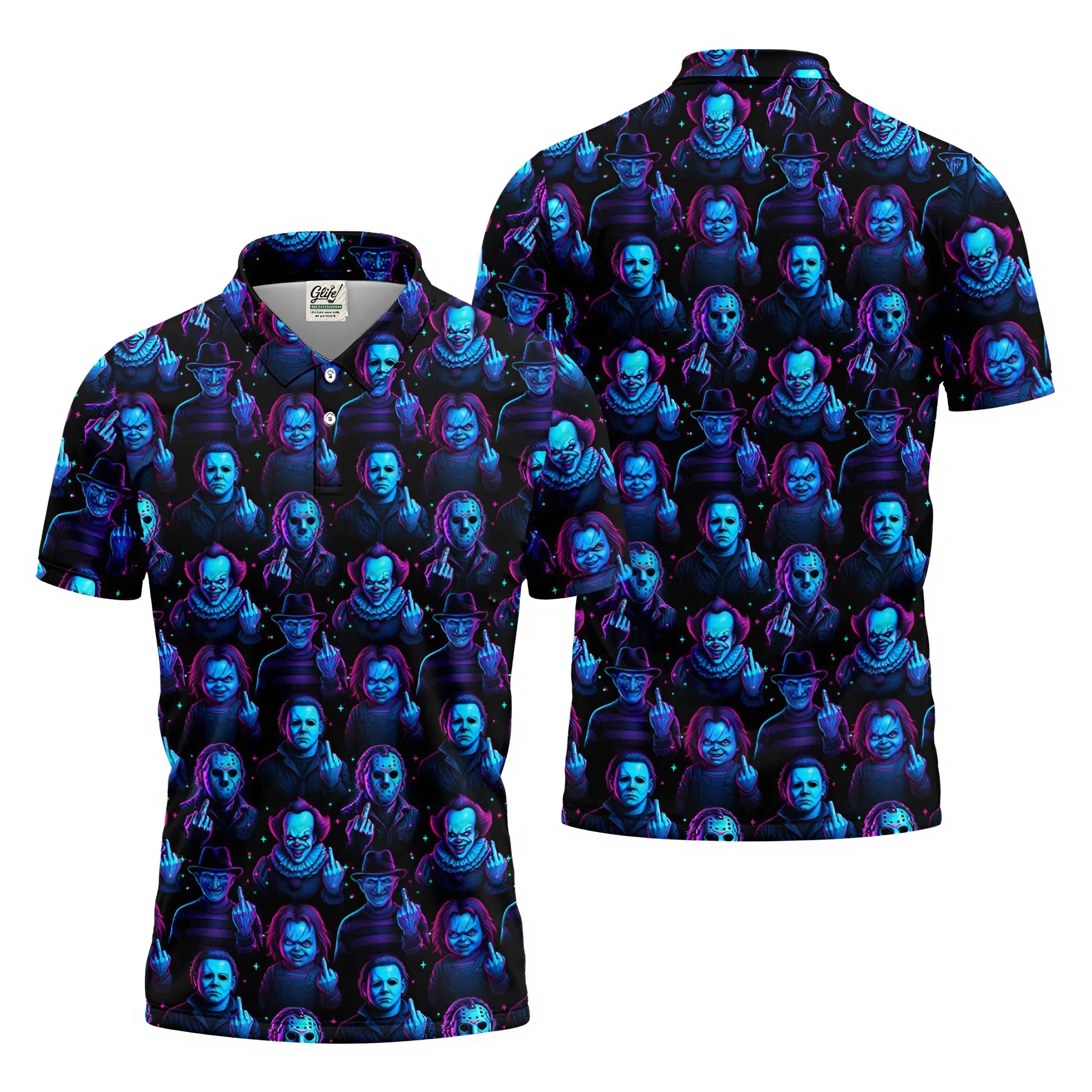 Funny Middle Finger Men's Golf Shirt, Horror Character Shirt, Halloween Golf Shirt, Scary Halloween Shirts