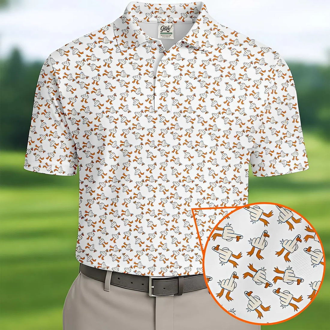 Middle Finger Duck Patterned Golf Polos, Mens Funny Golf Shirts, Mens Golf Polo Shirts, Funny Golf Shirt