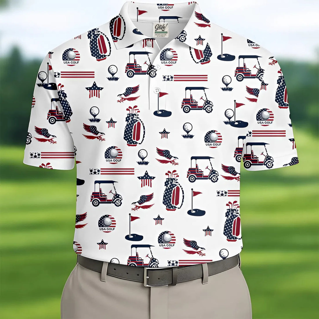 Patriotic USA Men's Golf Polo Shirt, Men's 4th Of July Shirts, USA Golf Shirt, Gifts For Golfing Dad