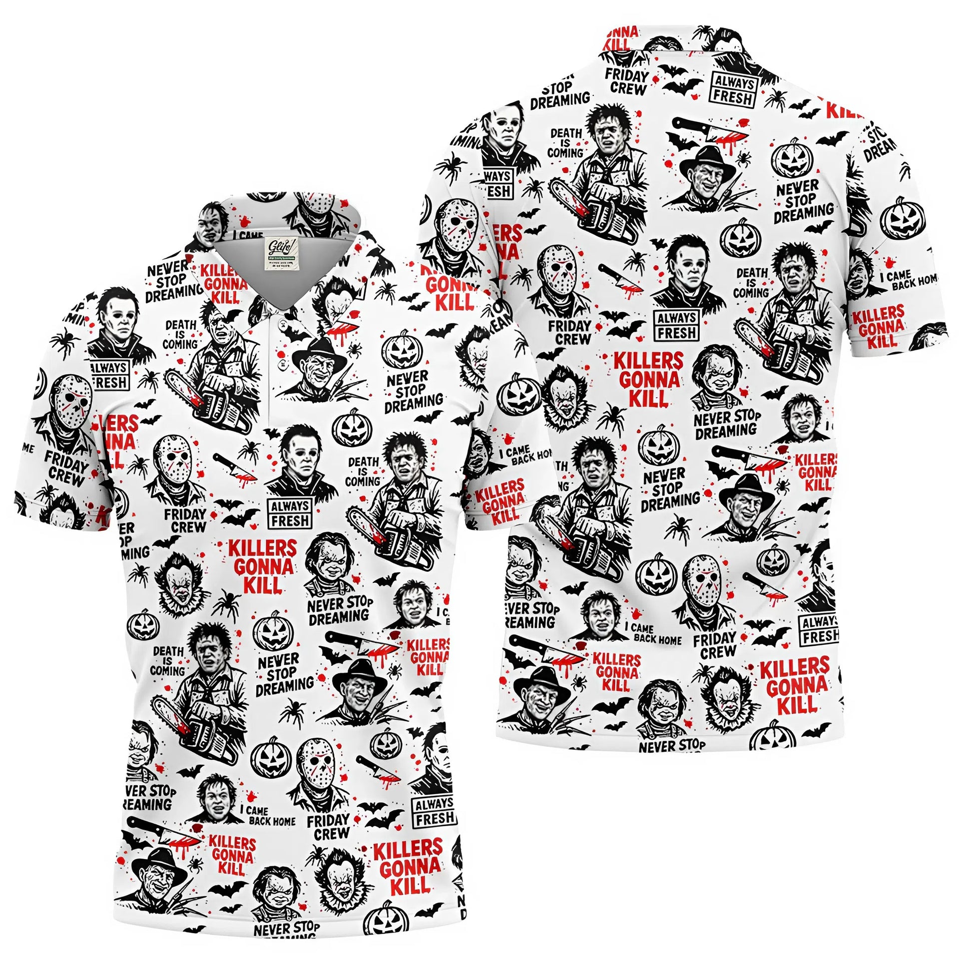 Funny Horror Character Men's Golf Polo Shirt, Horror Movie Shirt, Fun Golf Polo Shirt, Funny Halloween Gift