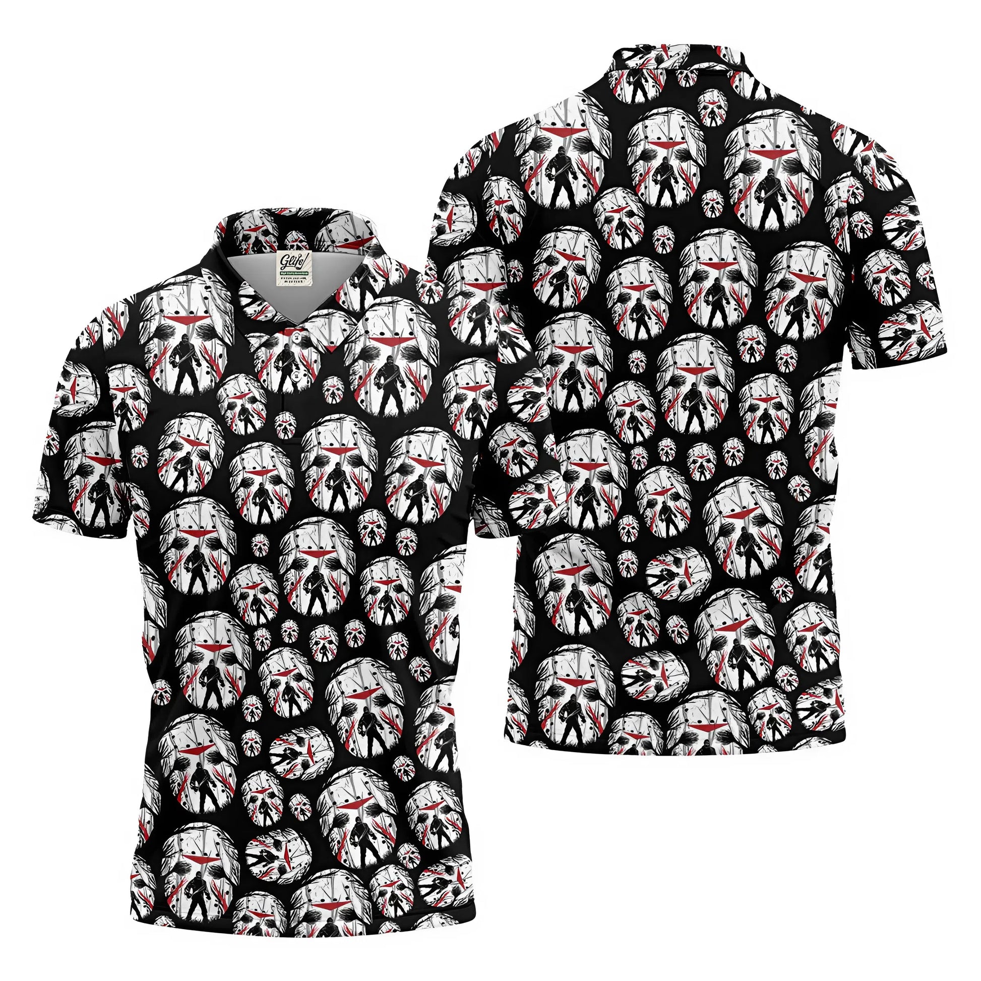 Jason Horror Character Men's Polo Shirt, Horror Movie Shirt, Halloween Golf Shirt, Scary Halloween Shirts